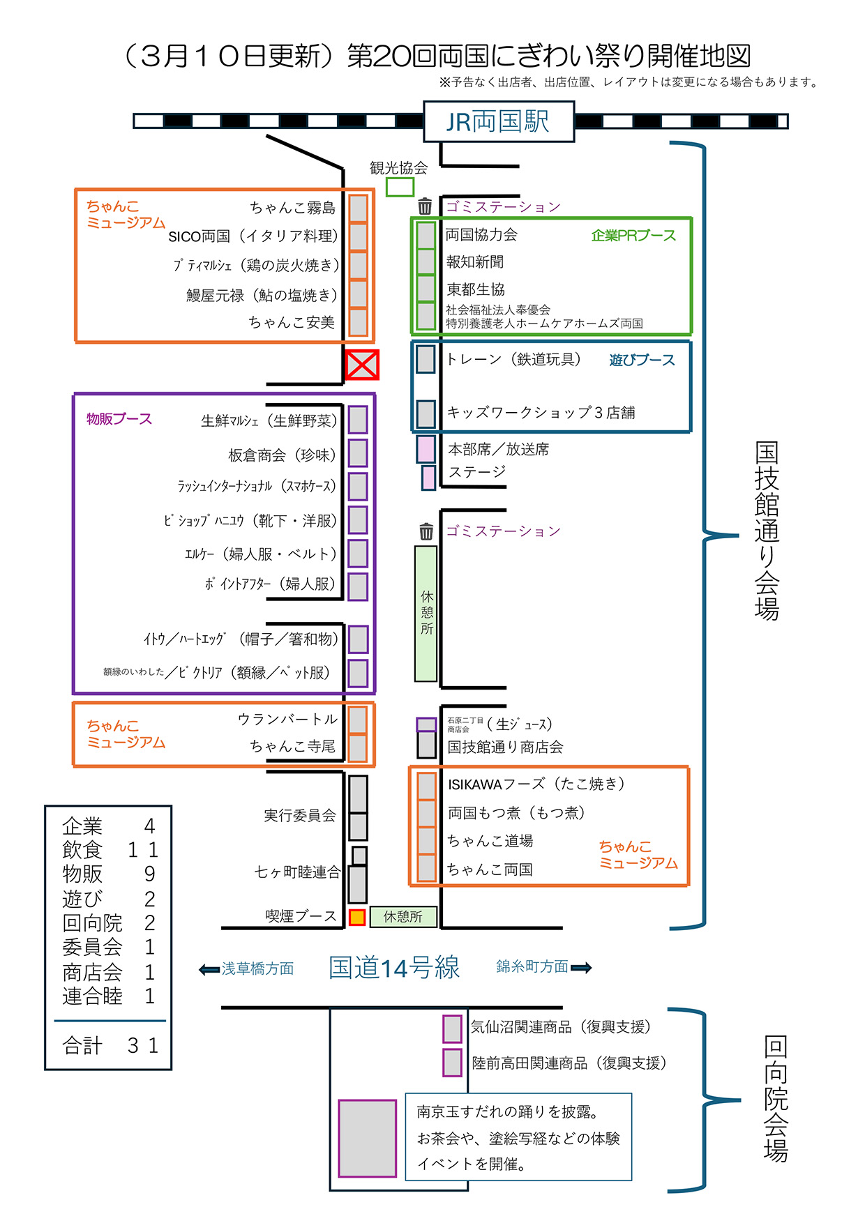 「第20回 両国にぎわい祭り」の会場レイアウトが更新され、ワークショップ等が追加されました!